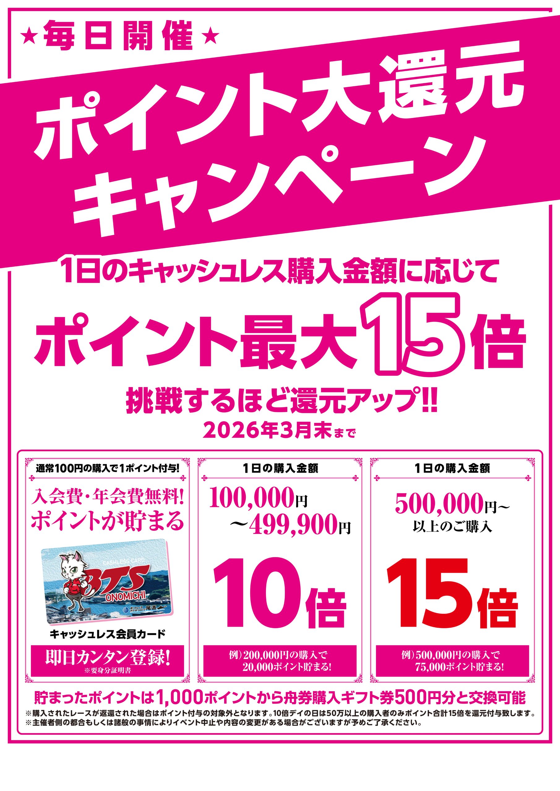 ※未確定舟券5000円毎にスタンプを一つ押させていただきます。