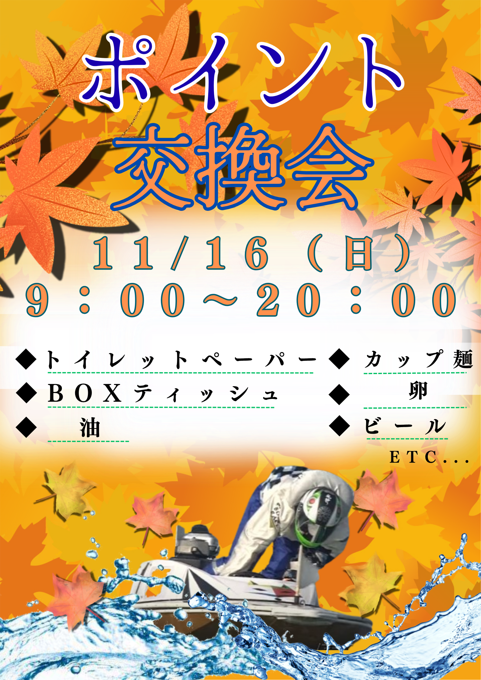 11/16(日)秋の恒例イベント「ポイント交換会」を開催します✨